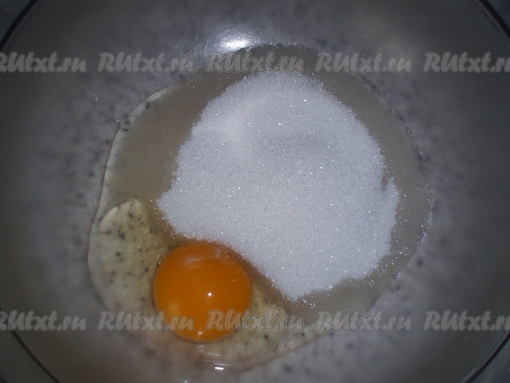 Для приготовления теста яйцо взбить с сахаром.