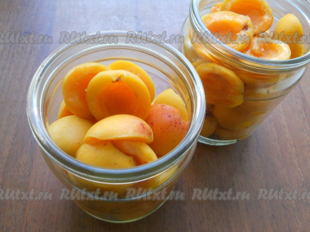 Банки и крышки простерилизовать, наполнить банки дольками абрикосов.