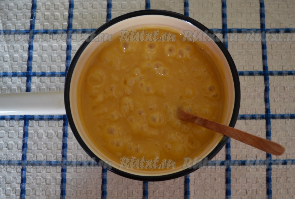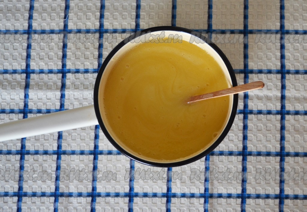 Чем дольше будете варить, тем масса будет приобретать более насыщенней желтый цвет и становиться все гуще и гуще.