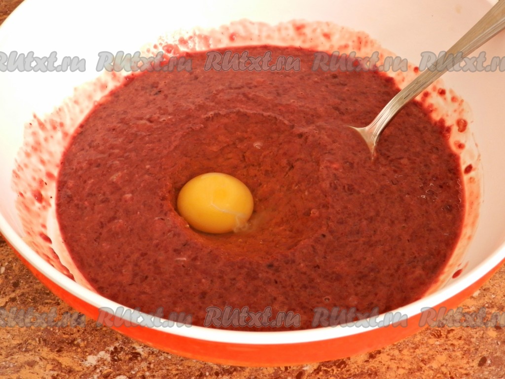 Добавить зубчик чеснока, пропущенный через пресс, и яйцо.