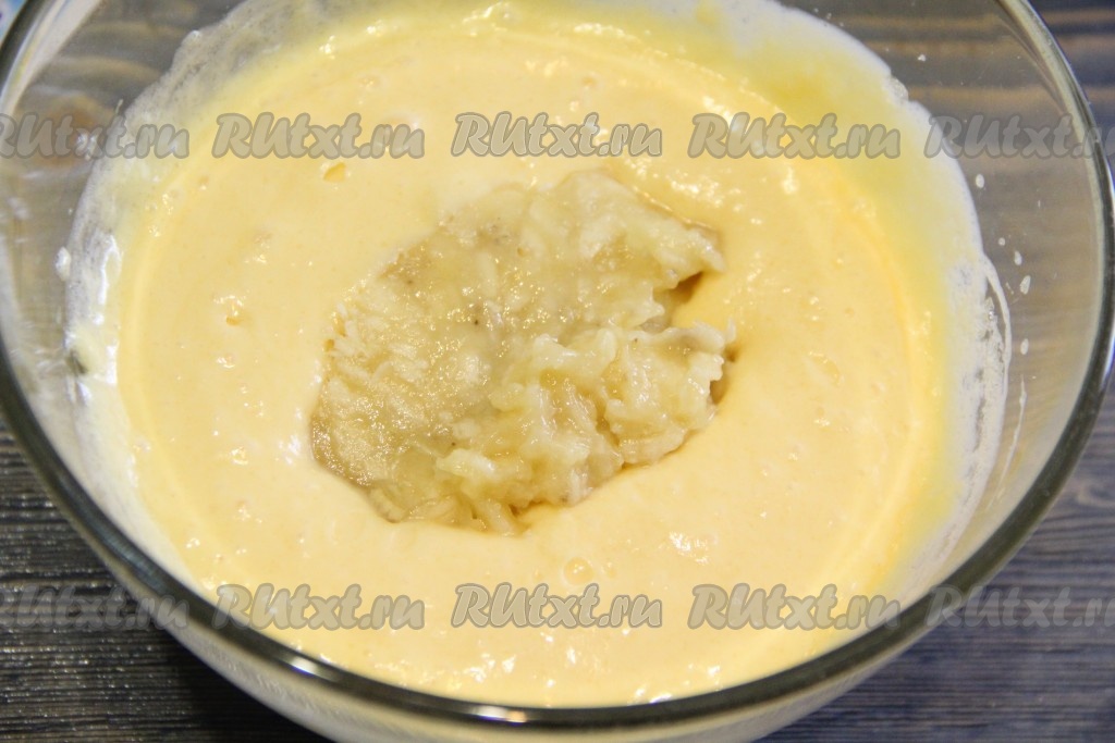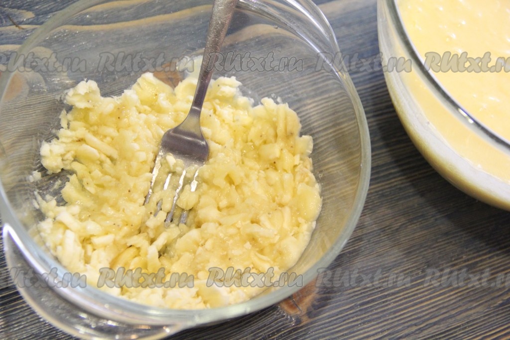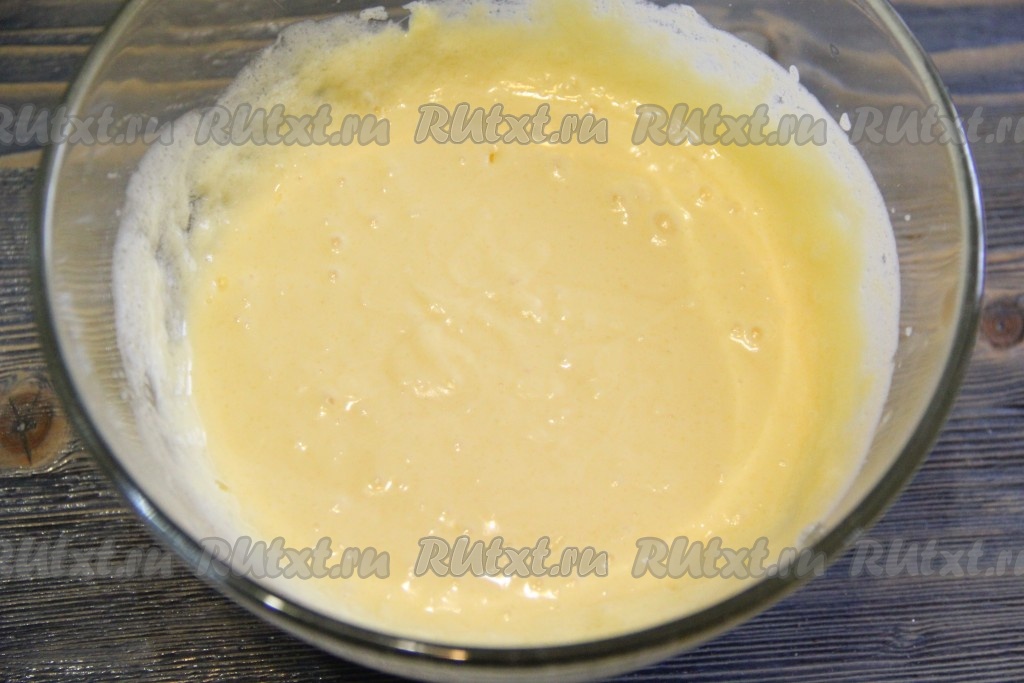 Перемешать тесто силиконовой лопаткой. Тесто для бананово-клубничного пирога получится очень воздушным и лёгким.