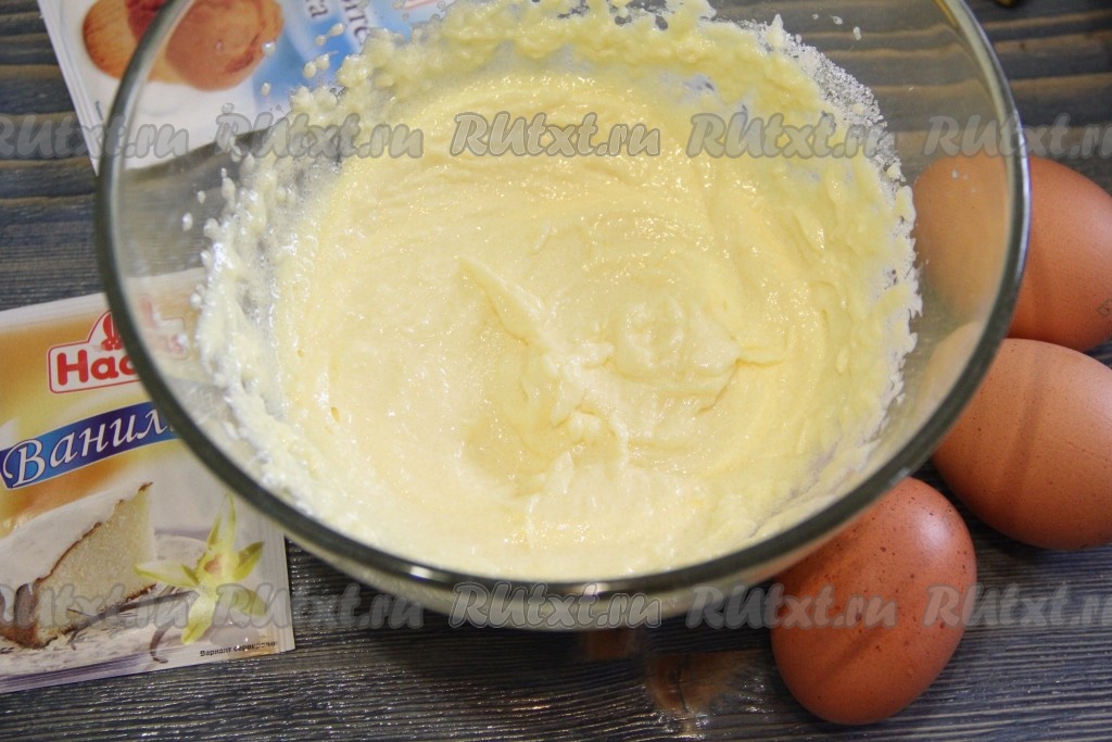 Затем в масляную массу добавить яйца и ванильный сахар.