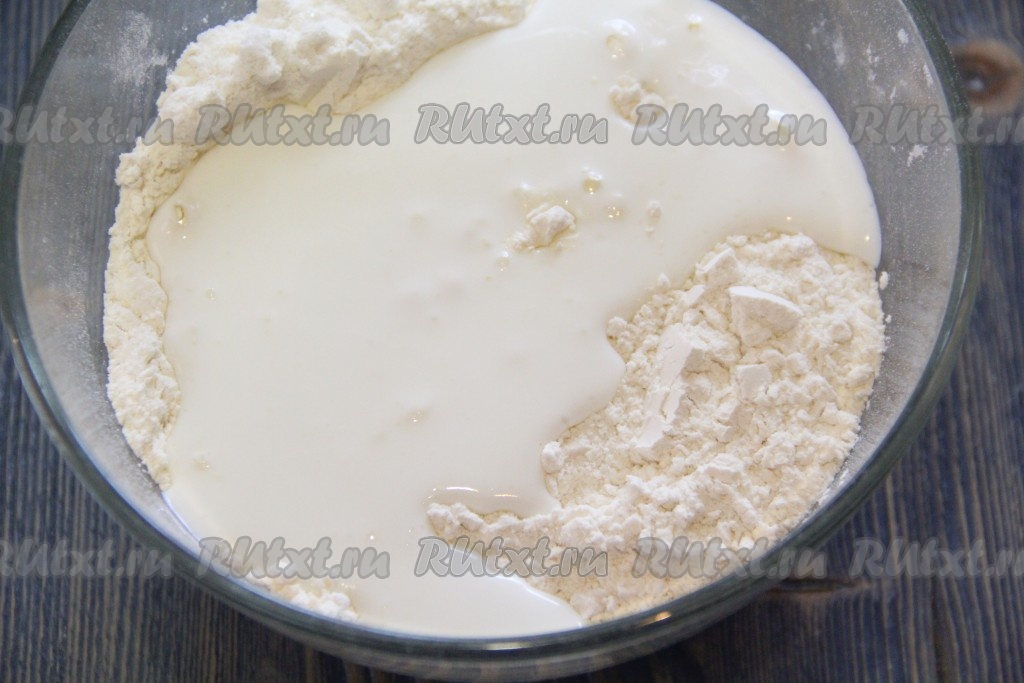 Затем влить кефир.
