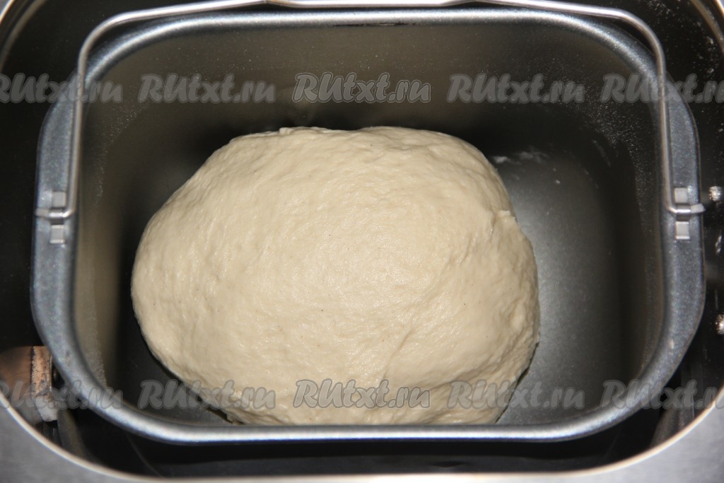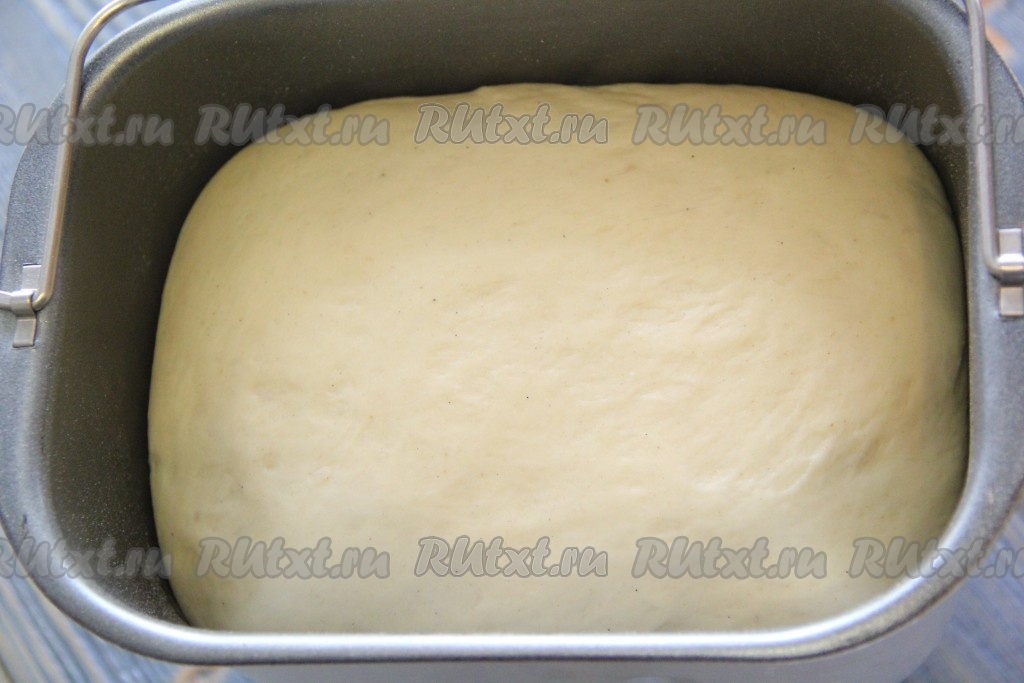 Затем всыпать муку, соль, дрожжи, кардамон и выставить режим хлебопечки "Замес теста" (в моей хлебопечки длительность замеса теста 1,5 часа). Если замешивать тесто вручную, то для начала нужно развести дрожжи в тёплом молоке и оставить минут на 15, чтобы дрожжи активизировались (на поверхности молока должна появиться пышная шапочка). Затем в глубокую миску влить подошедшие дрожжи, растопленное сливочное масло, добавить соль, сахар и кардамон, слегка перемешать и, подсыпая постепенно муку, замесить мягкое тесто, оставить его на 1,5 часа для подхода (миску с тестом лучше накрыть полотенцем).