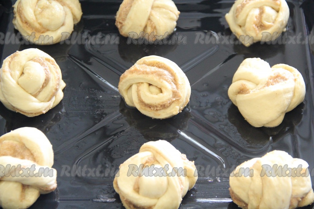 Выложить булочки на противень, предварительно смазанный растительным маслом, и оставить на 30-40 минут в тепле.