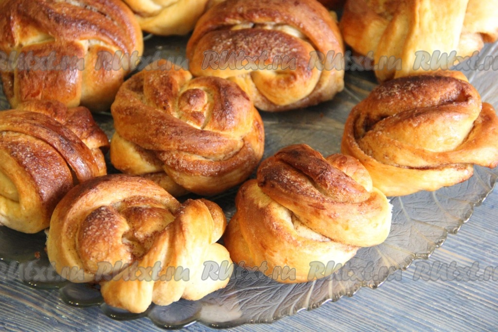 Подать красивые и вкусные булочки с корицей и сахаром к столу.  Уверена, такая выпечка порадует всю Вашу семью.