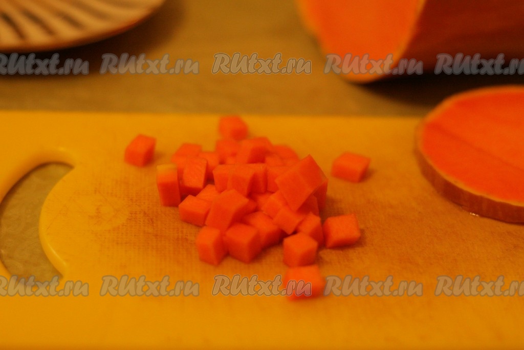 Тыкву очистить от кожуры и нарезать маленькими кусочками.