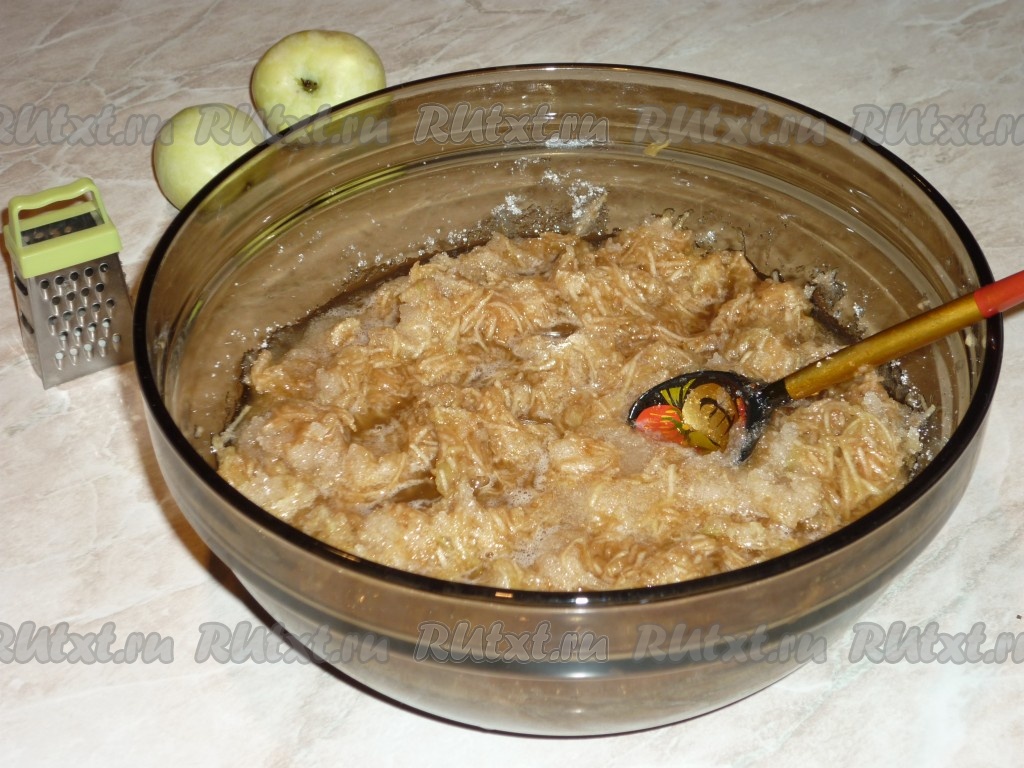 Натёртые яблоки засыпать сахаром и перемешать.