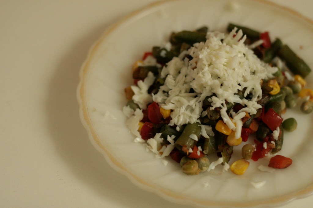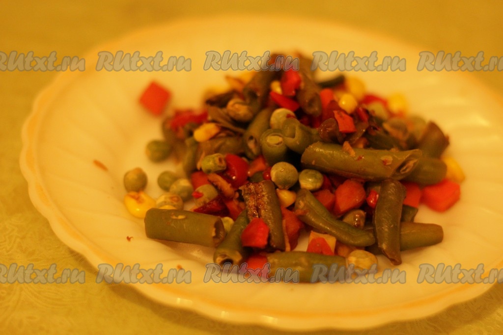 Овощи (если используете замороженные овощи) необходимо выложить в сито и оставить размораживаться (около 30 минут).