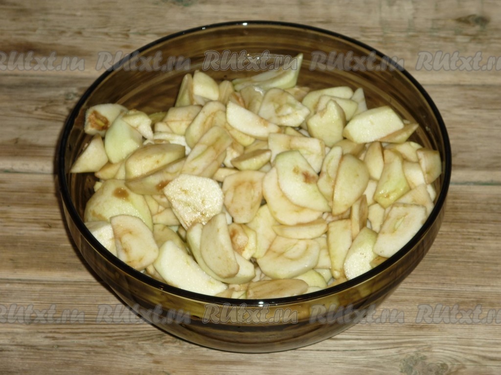 Яблоки очистить от кожуры и семечек, нарезать дольками.
