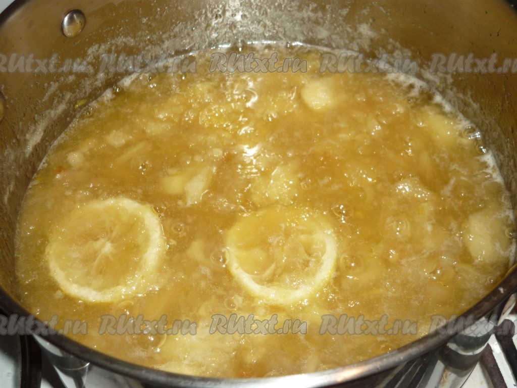 Очень вкусное, красивое варенье из яблок с лимоном готово.