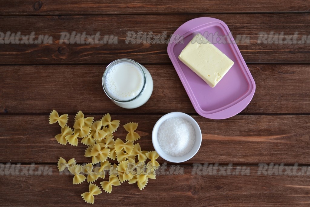 Пока варятся макароны, параллельно должно закипать молоко. В кипящее молоко всыпаем сахар и соль.