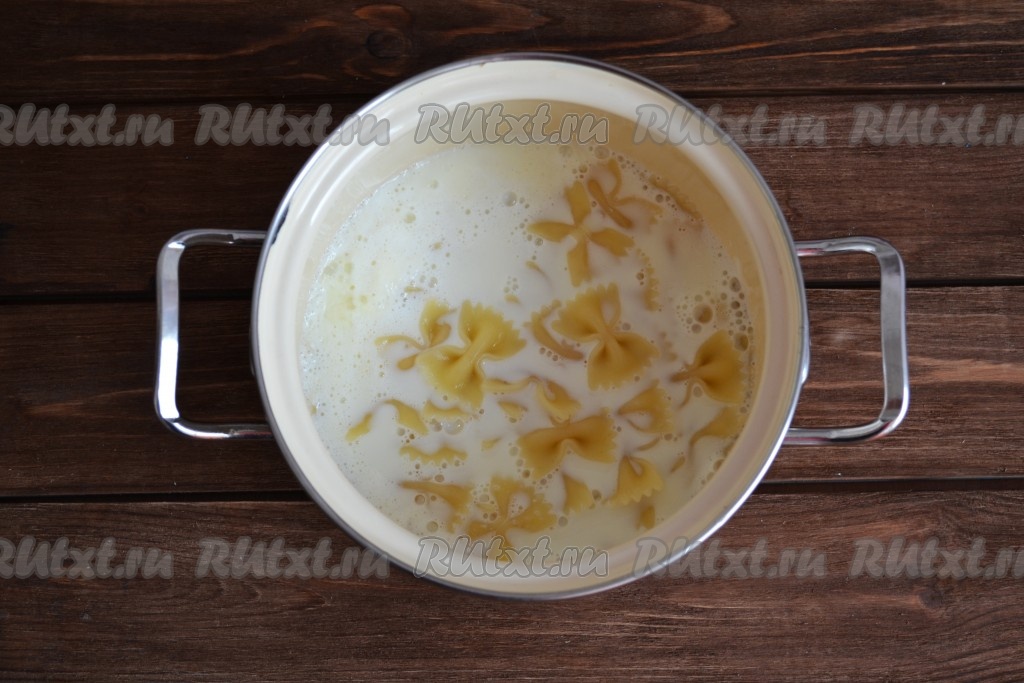 В закипевшую воду всыпаем макароны и отвариваем до готовности, в соответствии с инструкцией на упаковке, но не перевариваем. Сваренные макароны должны быть аl dente ("на зубок"). Количество макарон можно увеличить или уменьшить, это уже дело вкуса. Если любите более густой молочный суп, отварите большее количество макарон.