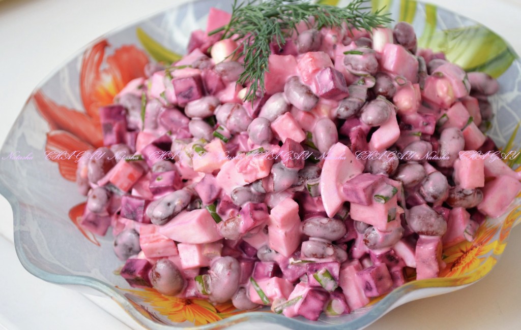 Давно не готовила новых вкусненьких салатов. Своей очереди ждал салат из консервированной фасоли с крабовыми палочками и свеклой, вот его я и сделала. Блюдо получилось очень вкусным, нежным, аппетитным и сытным. Советую вам его попробовать!