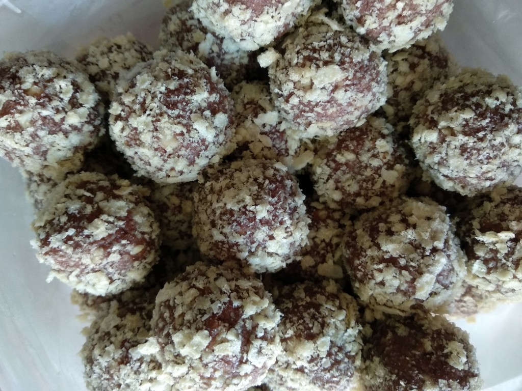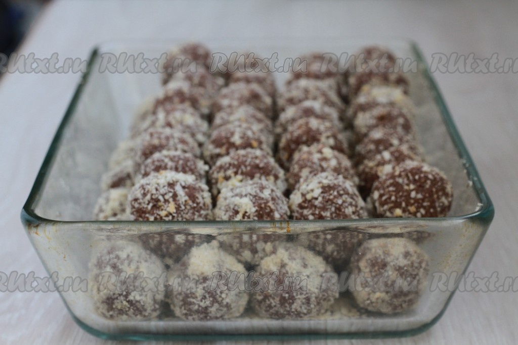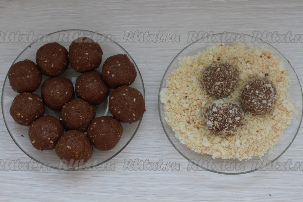 Сформировать шарики из получившейся массы. Затем обвалять каждый шарик в вафельной крошке (очень кропотливая работа).