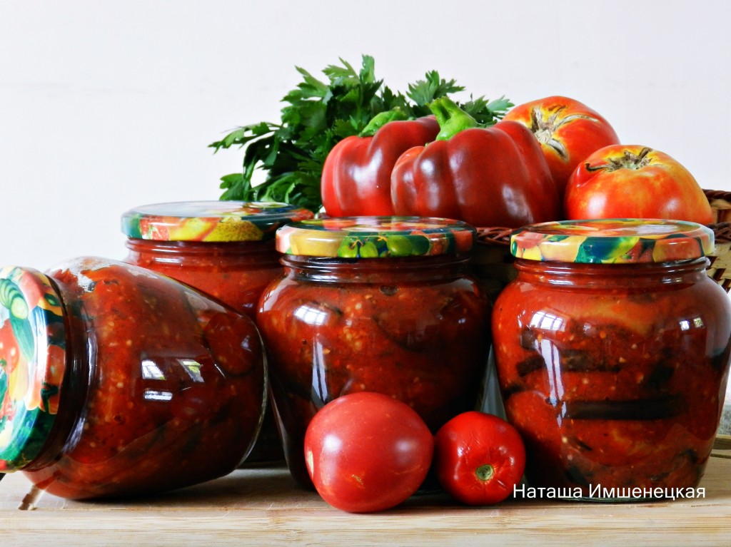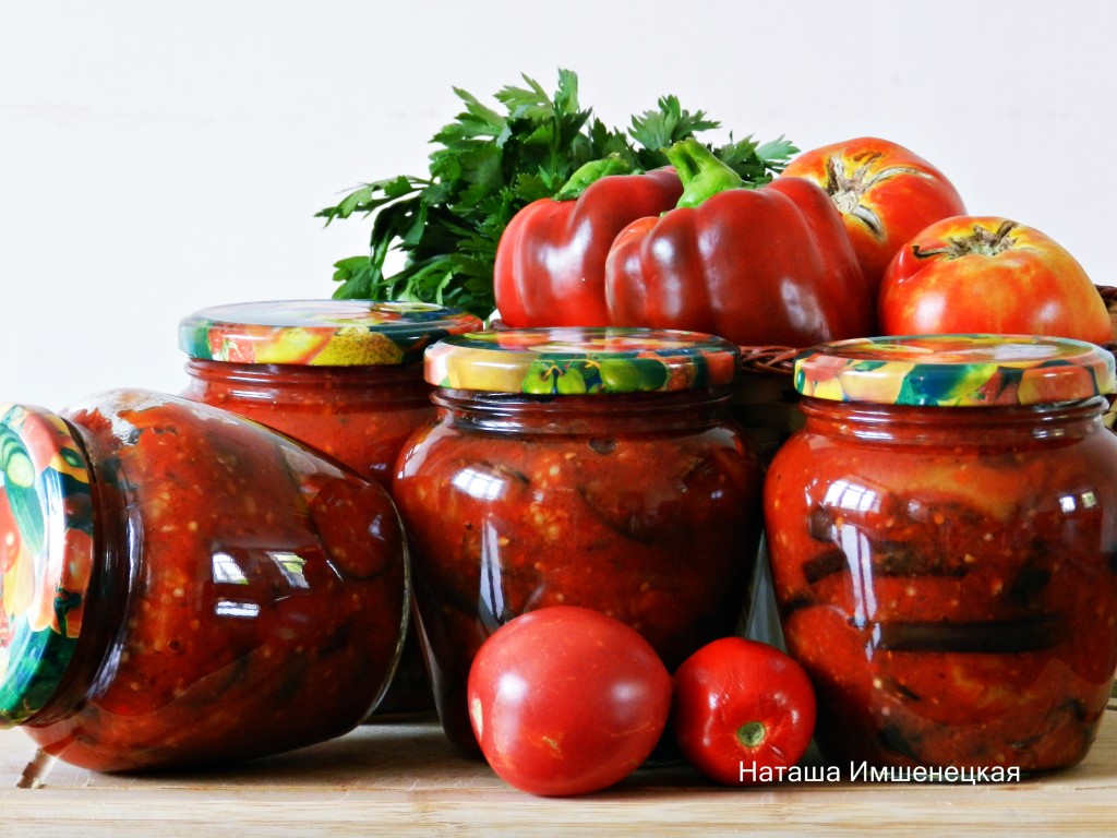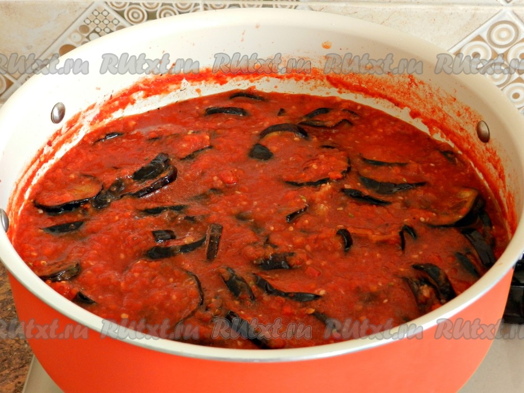 Заготовка из баклажанов в томатном соусе на зиму готова.