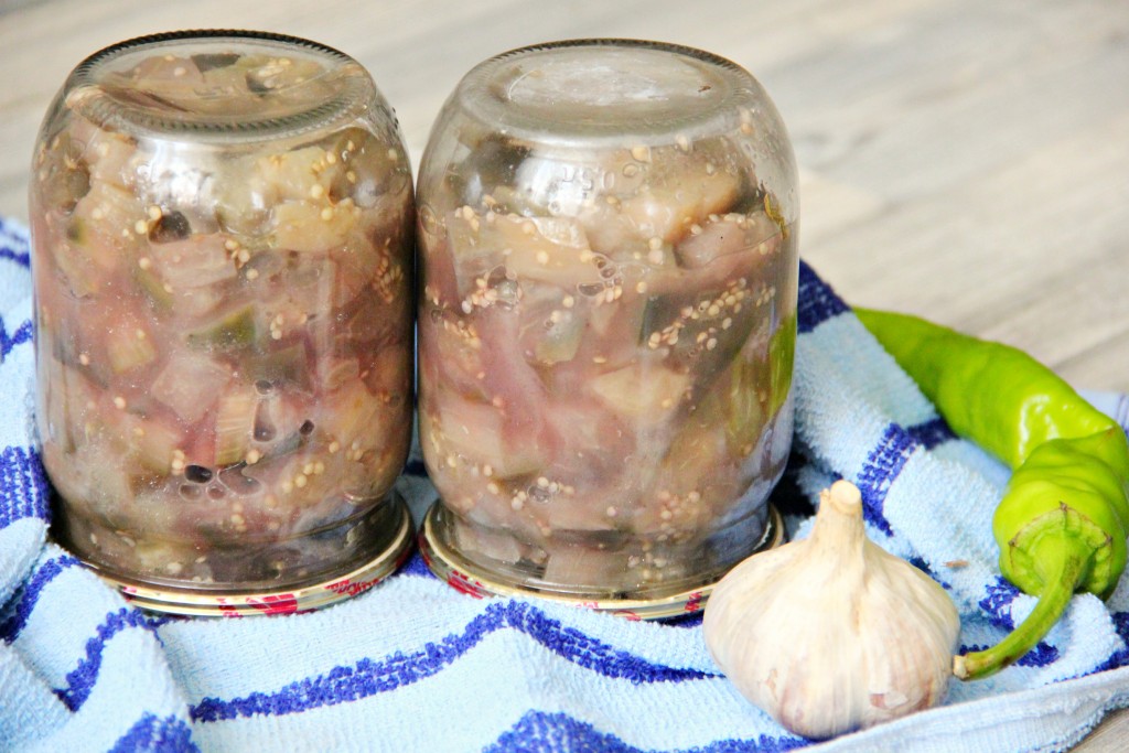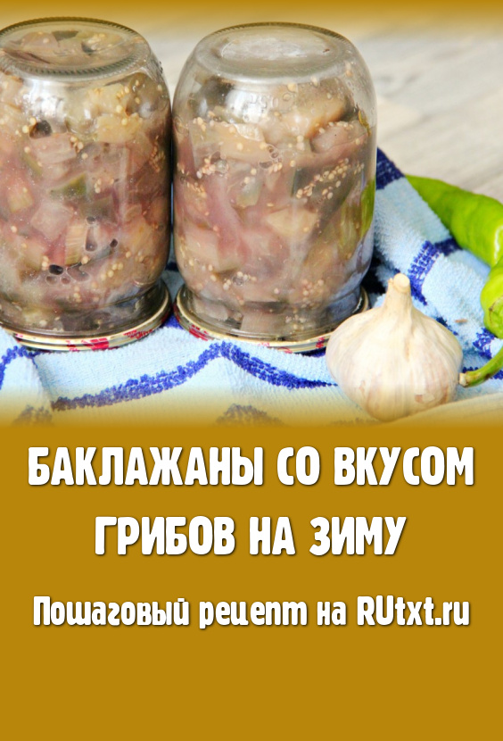 Данная закуска зимой будет, как находка. Заготовка из баклажанов, приготовленная по этому рецепту, по вкусу напоминает грибы. Открыв зимой баночку с этой закуской, вам только потребуется смазать их майонезом или сметанкой, выдавить туда чеснок и наслаждаться наивкуснейшим блюдом. Из данного количества ингредиентов получится 10 банок по 0,5 литра.