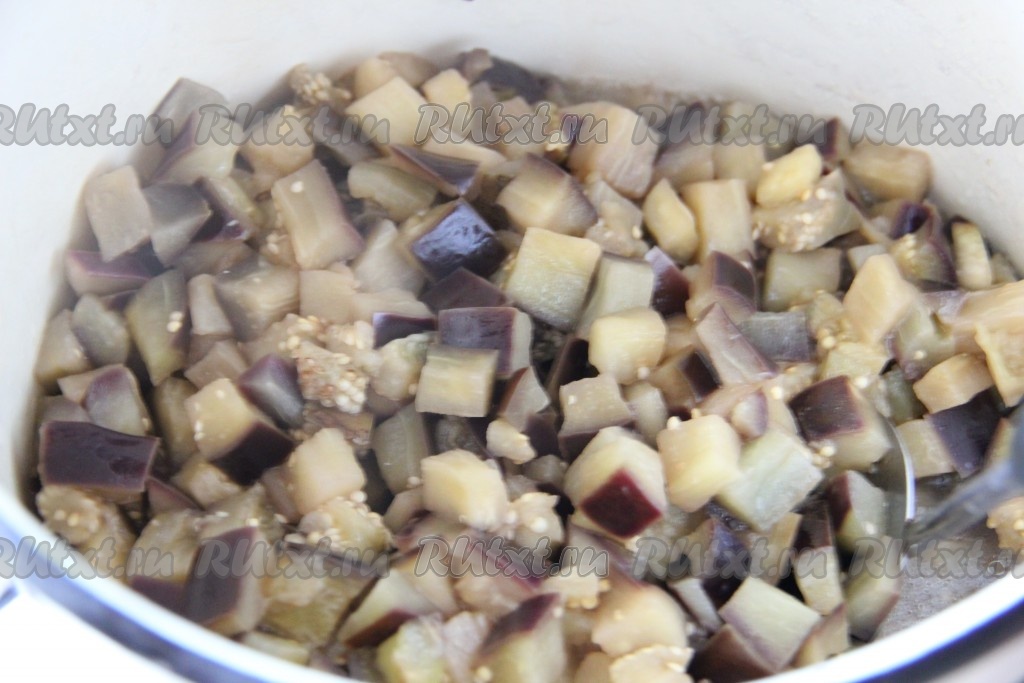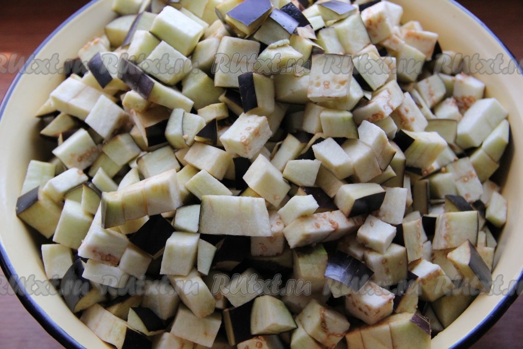 Баклажаны нарезать кубиками.