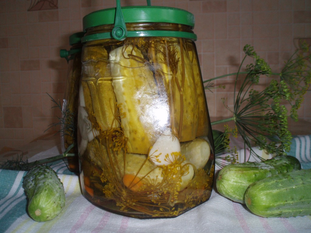 Несколько лет назад нашла в Интернете этот рецепт приготовления огурцов, маринованных по-польски, и с тех пор он у нас так прижился! Мой муж очень любит такие кисло-сладкие огурчики. Предлагаю замариновать баночку таким способом. Надеюсь, вам понравится.