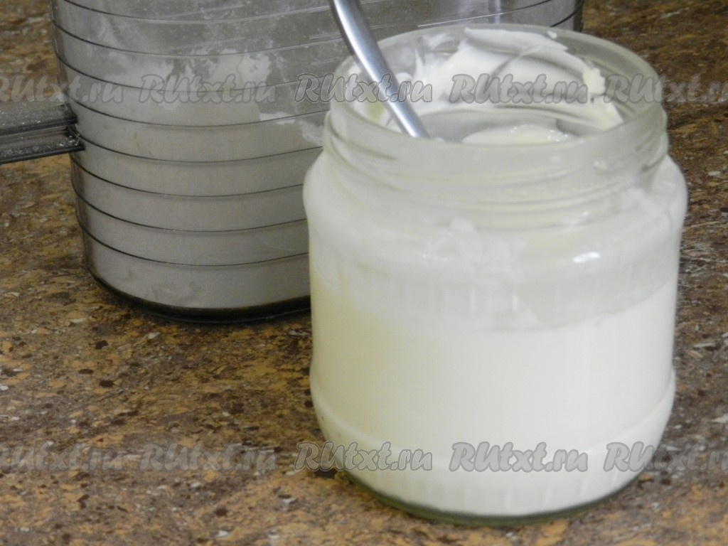 Сметану развести водой до объема примерно 300 мл, добавить муку, все хорошо перемешать, чтобы не было комков.