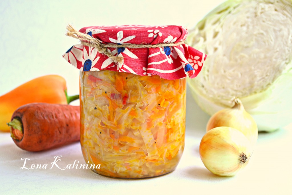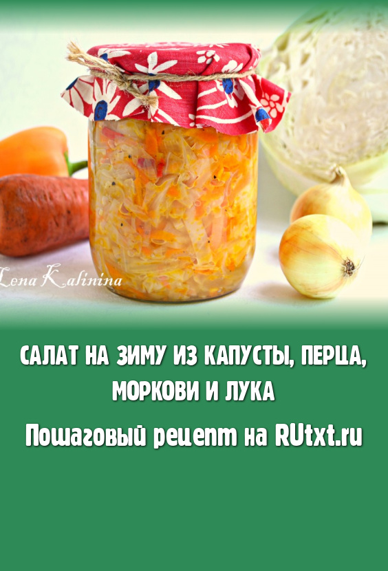 Салат на зиму из капусты, перца, моркови и лука - отличная заготовка, которая готовится просто и быстро. Этот закусочный салат обязательно придется вам по вкусу. Зимой такой вкусный салатик можно подать к отварному картофелю или мясу. Из данного количества продуктов получится одна 0,5-литровая баночка салата и немного - на пробу.