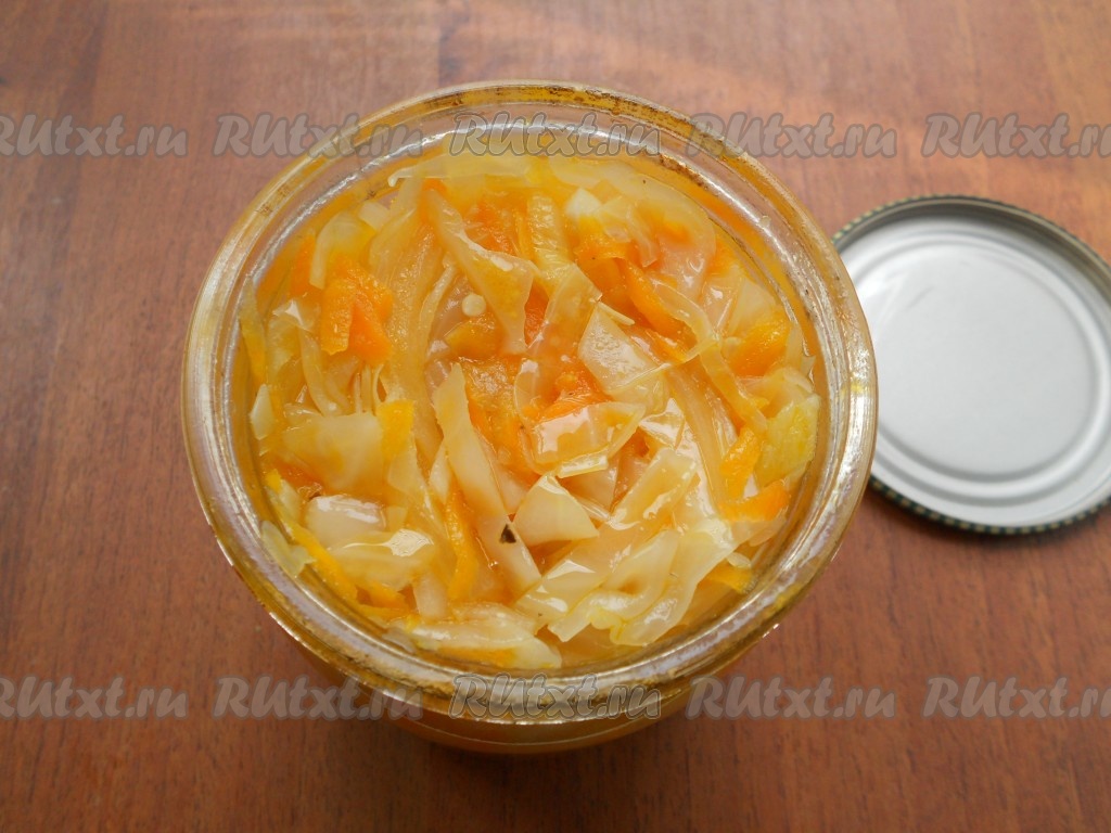 Банку перевернуть, укутать теплым одеялом и оставить до полного остывания. Хранить заготовку следует в прохладном темном месте. Вкусный закусочный салат из капусты, перца и моркови зимой станет отличным дополнением ко многим блюдам.