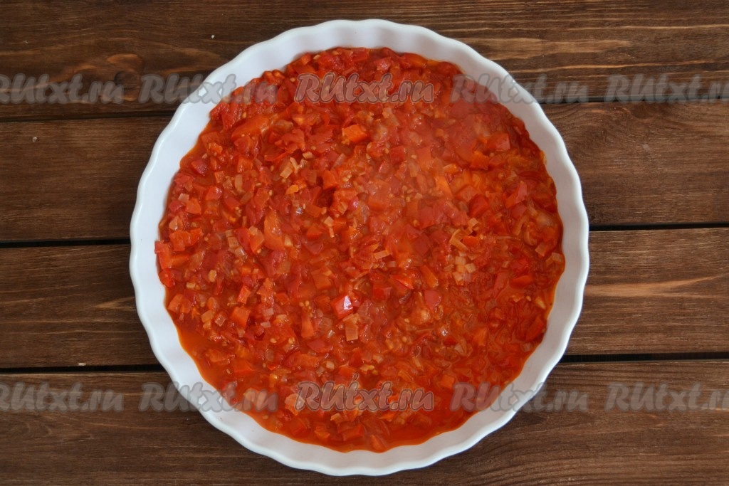 Большую часть соуса выложить в жаропрочную форму (оставшийся соус можно использовать для подачи).