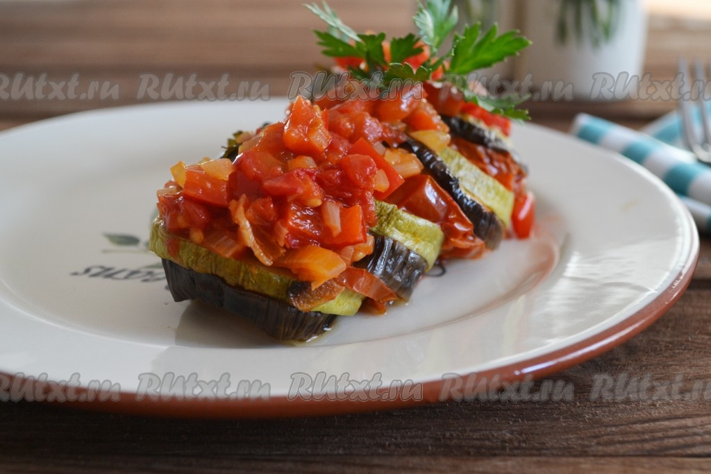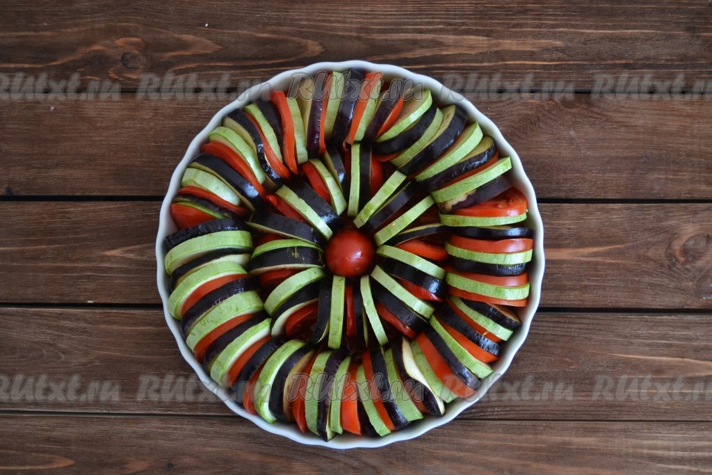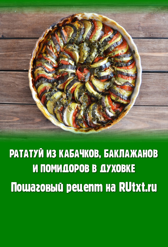 Рататуй, приготовленный из кабачков, баклажанов и помидоров в духовке, получается очень сочным, ароматным и вкусным. Он отлично впишется в повседневное меню и в качестве гарнира, и в качестве самостоятельного блюда.