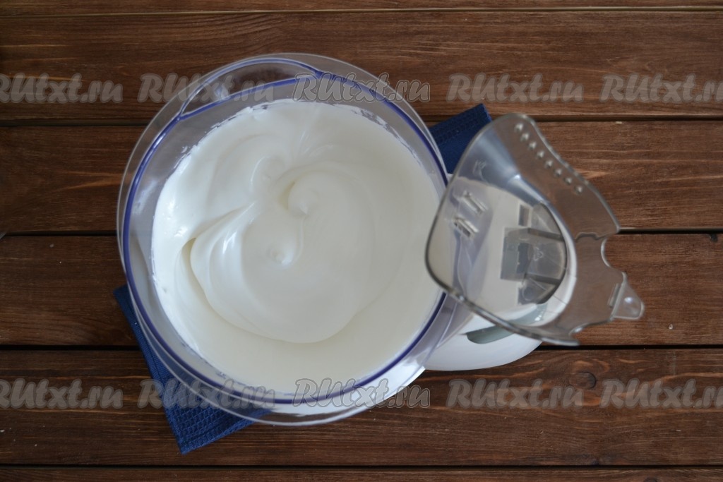Продолжаем взбивать, пока сахар не растворится. Белковая масса должна стать очень густой.