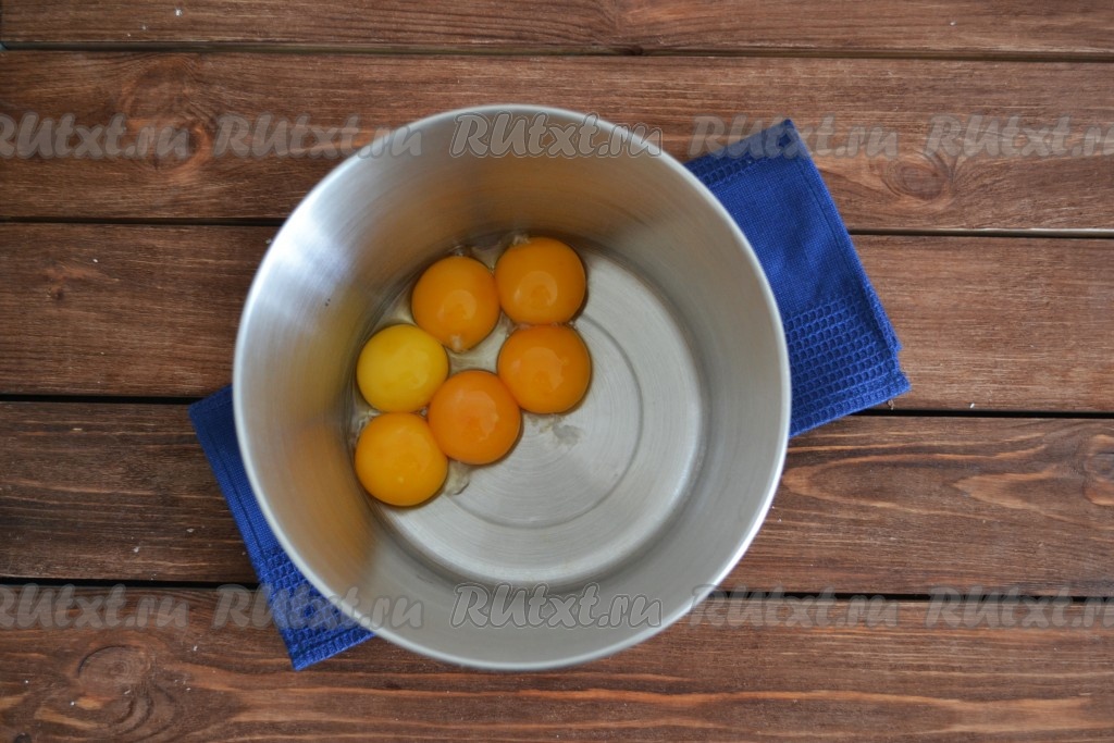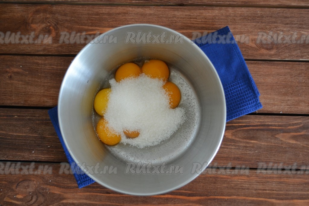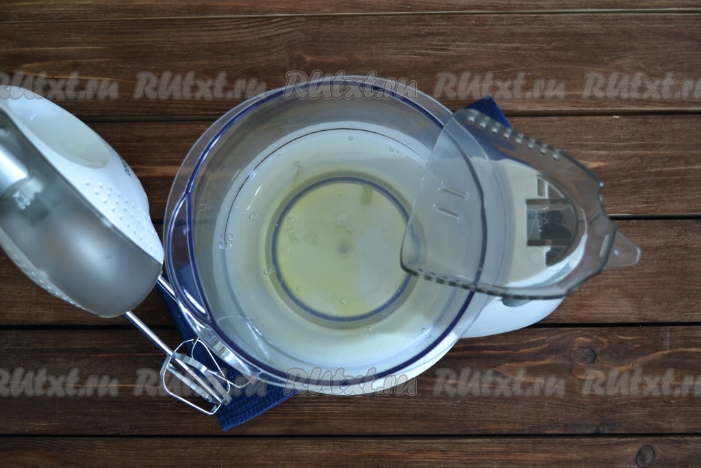 В отдельной емкости яичные белки начинаем взбивать без сахара.
