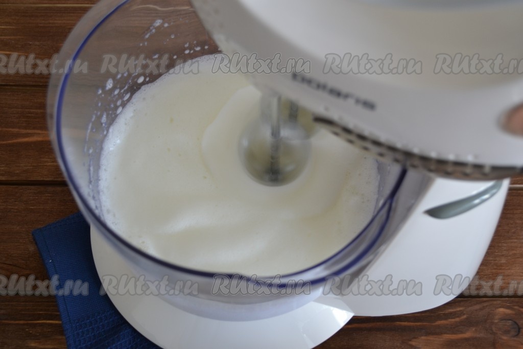 Взбиваем белки миксером на высокой скорости в пышную массу.