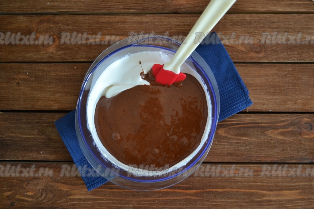 И очень аккуратно с помощью силиконовой лопатки начинаем перемешивать белковую и шоколадную массы движениями "вверх-вниз".
