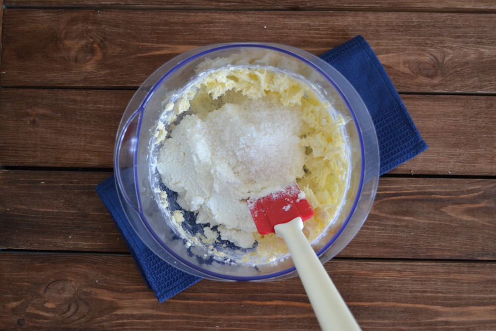 Всыпаем муку в получившееся тесто и продолжаем аккуратно перемешивать.