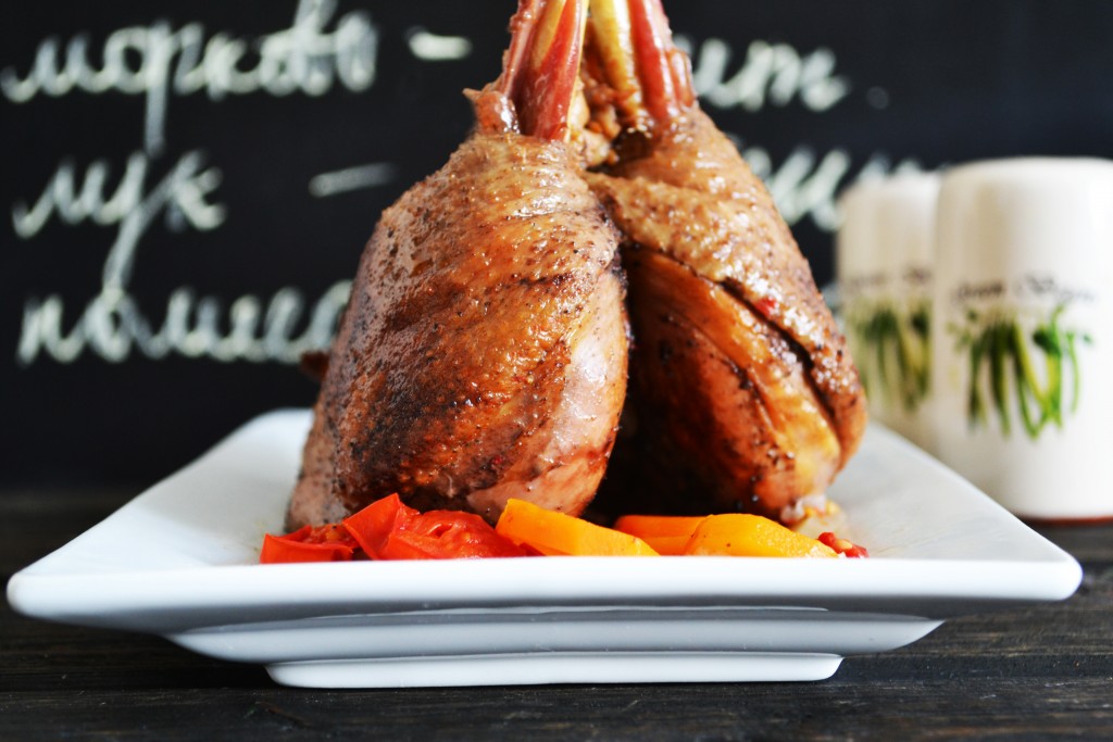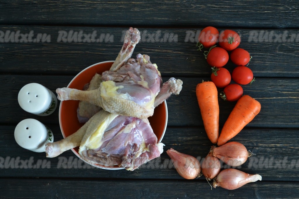 Подготовим все необходимые ингредиенты, гуся разрезаем на кусочки.