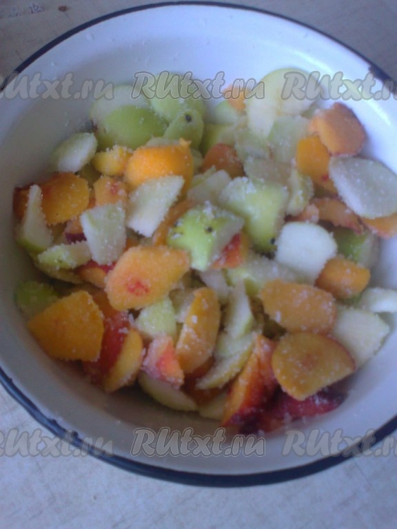 Фрукты для начинки нужно вымыть, нарезать мелкими кусочками и смешать с 3 столовыми ложками сахара или по вкусу.