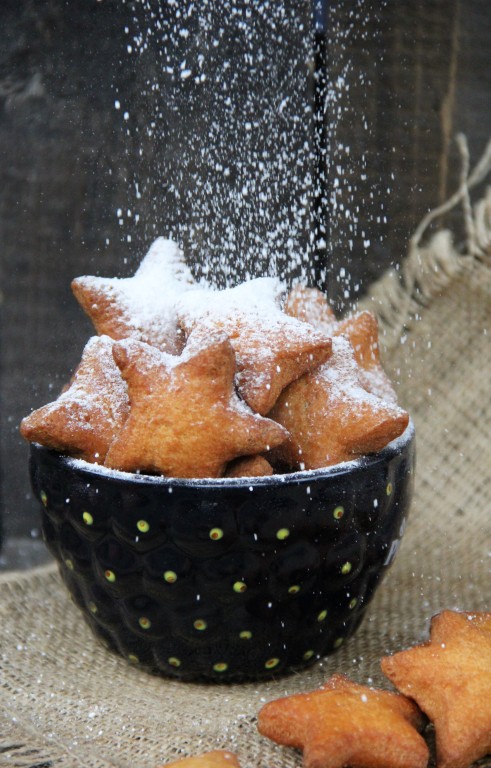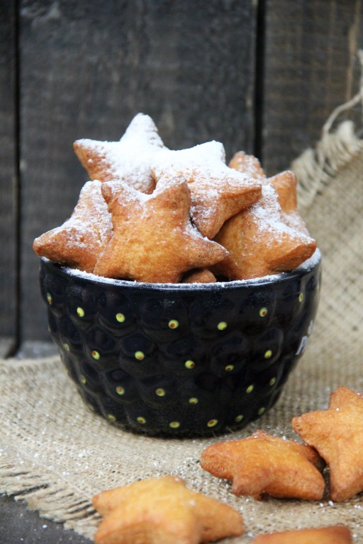 Перед подачей посыпать рассыпчатое печенье сахарной пудрой. Вот такое аппетитное и очень вкусное получается печенье, жареное во фритюре.