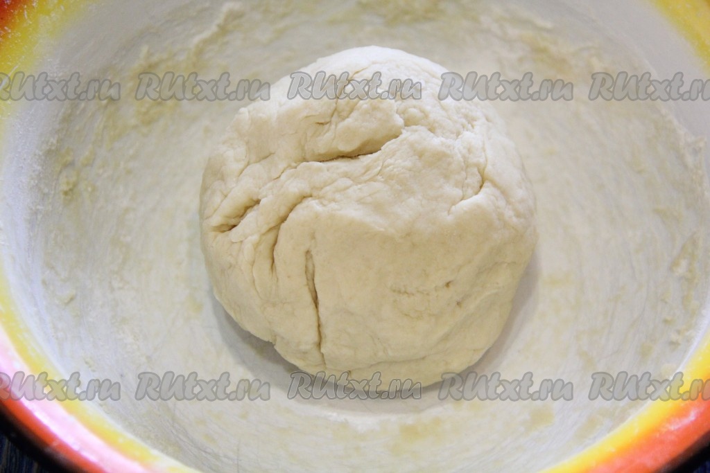 Замесить мягкое и слегка липкое тесто. Убрать тесто в пищевую плёнку и оставить его при комнатной температуре на 30 минут.
