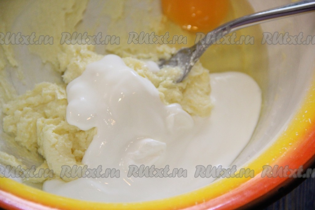 И влить сметану. Я использовала сметану жирностью 15%, но можно и 20% жирности.