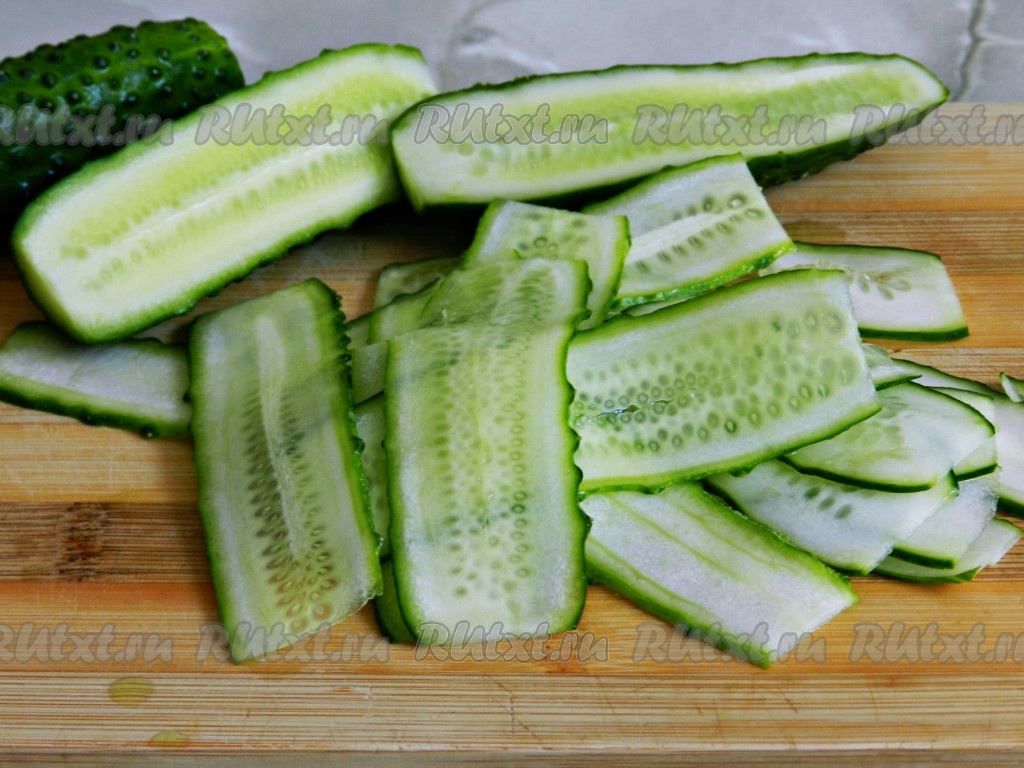 Нарезать огурцы слайсами.