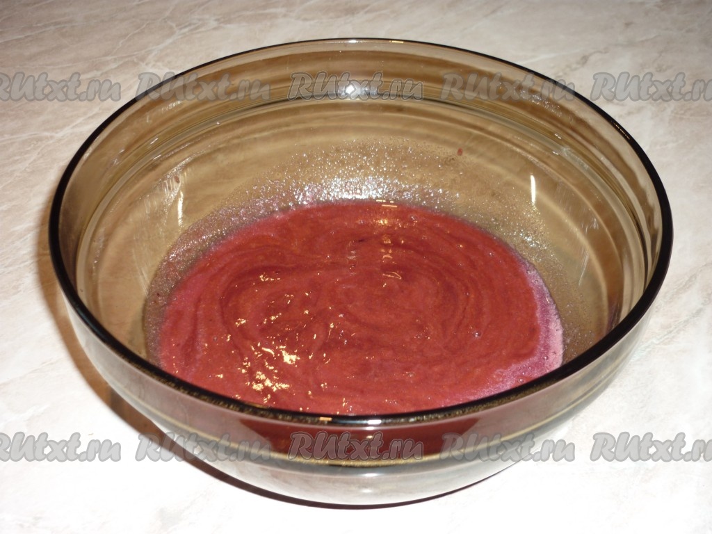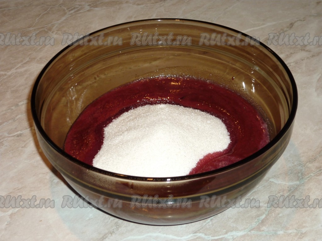 Косточки выбросить, а в ягодное пюре всыпать сахар.