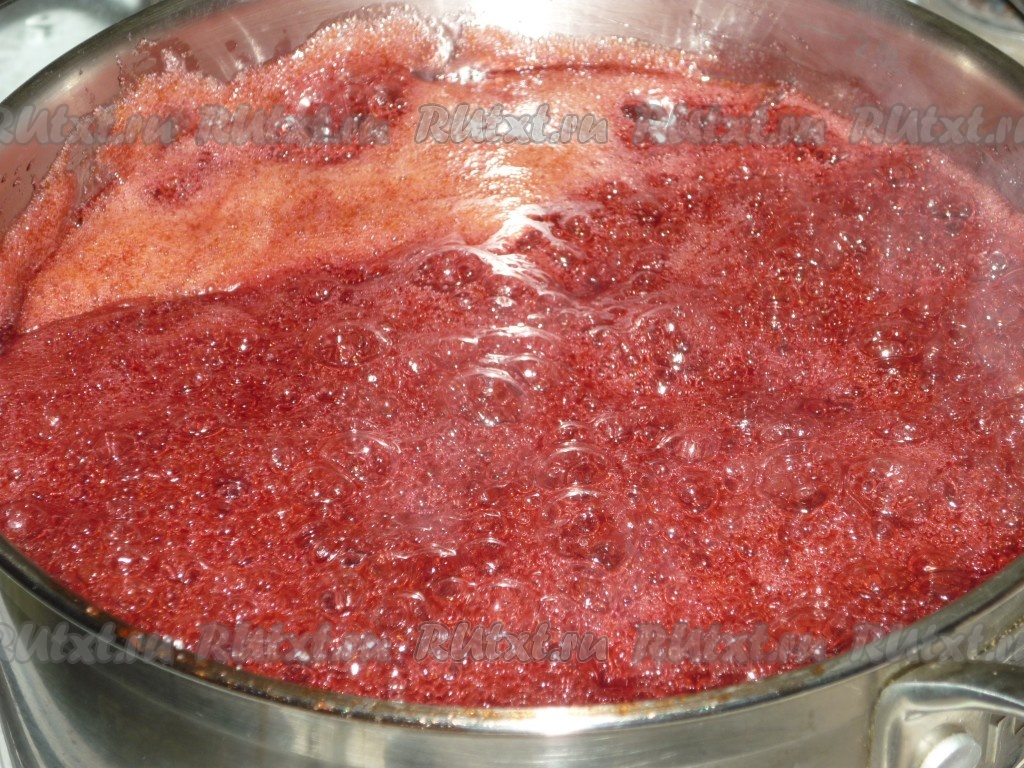 Довести варенье до кипения, уменьшить огонь и варить 20 минут, периодически помешивая и снимая образовавшуюся пену.