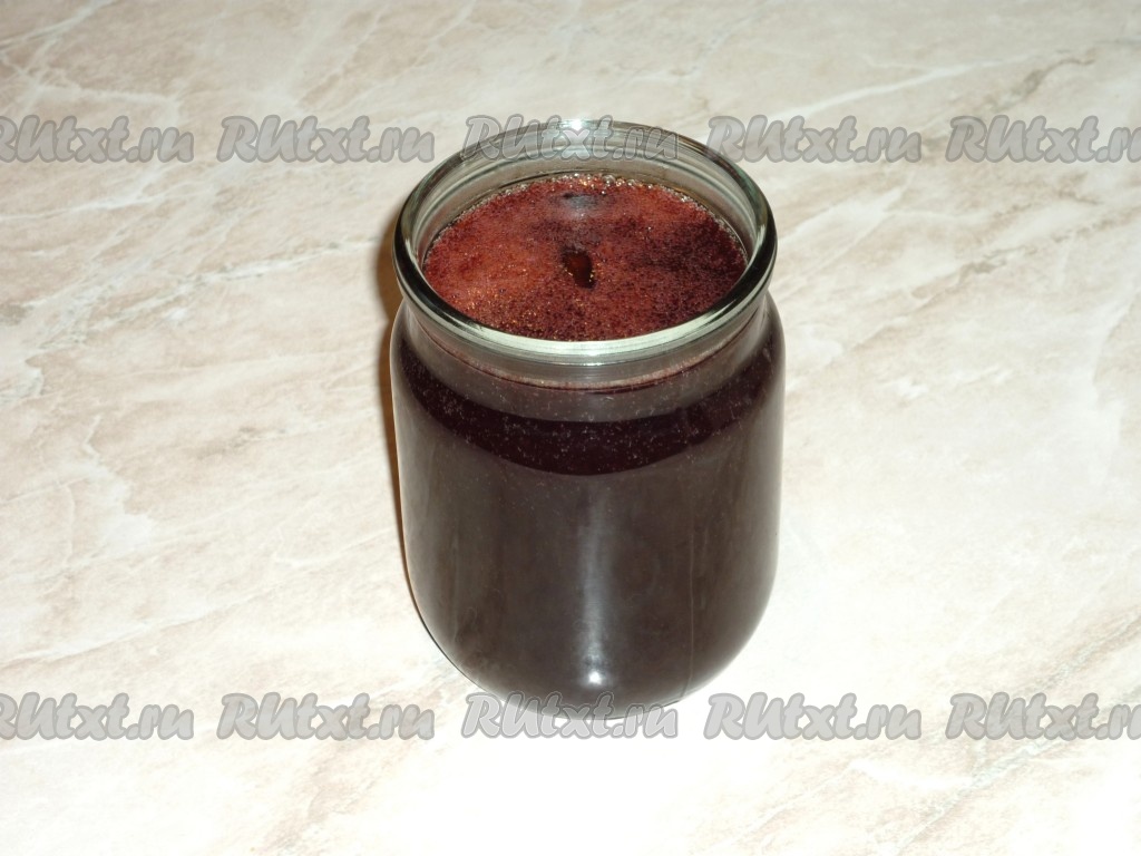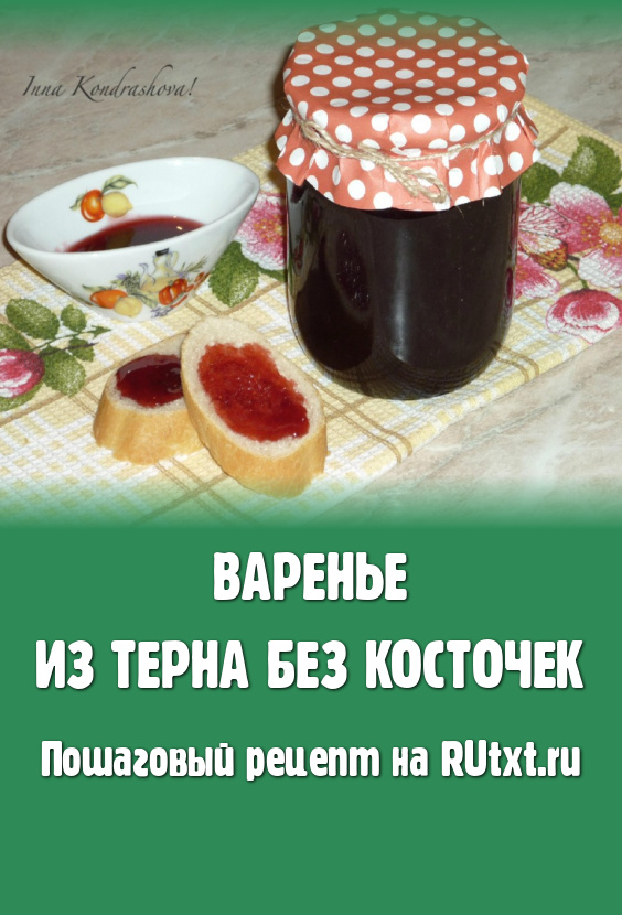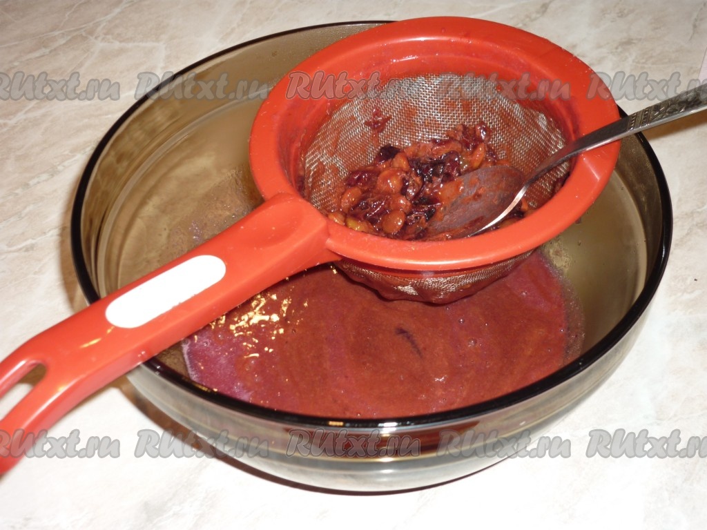 Протереть терн через сито. На косточках должно остаться как можно меньше мякоти. Если остается много мякоти, то косточки можно ещё раз проварить, а затем протереть через сито.