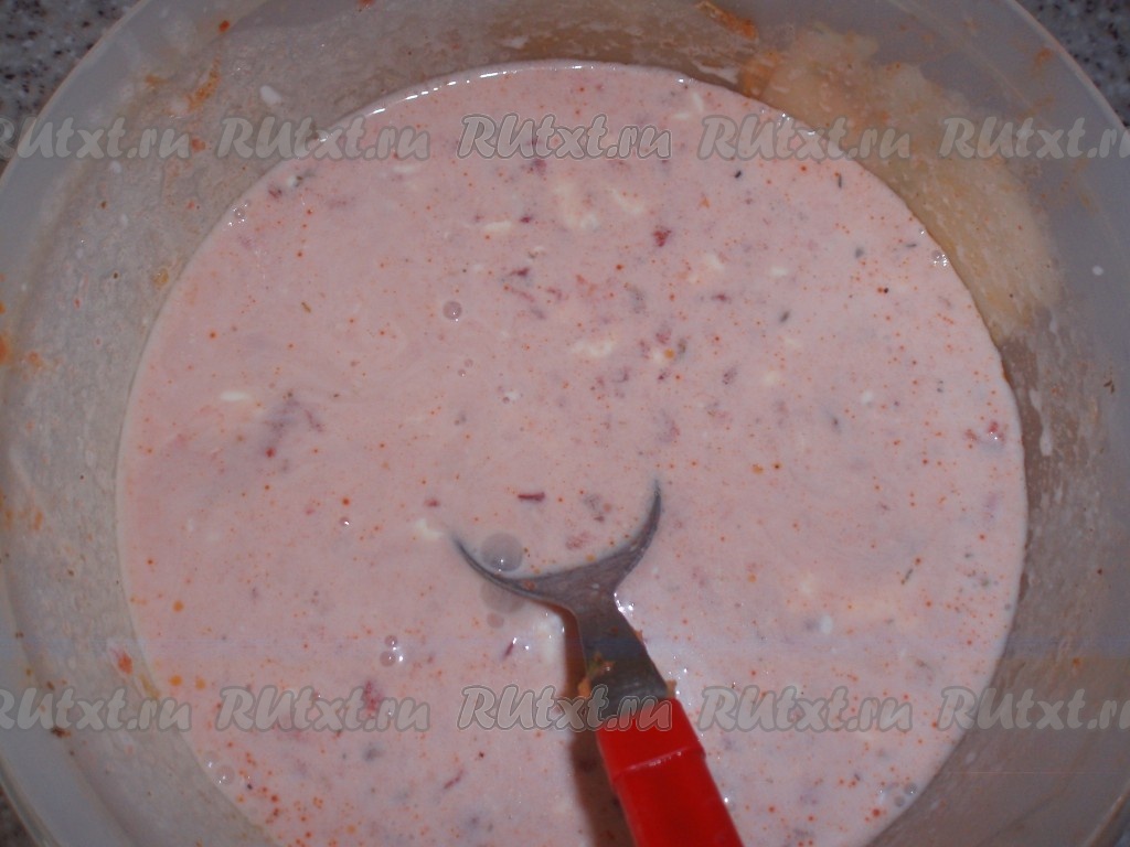 Все перемешать до однородности, добавив по вкусу соль и черный перец.
