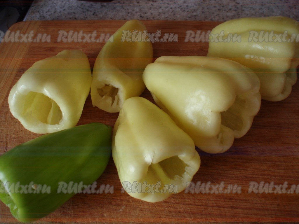Перец вымыть, очистить от семян.
