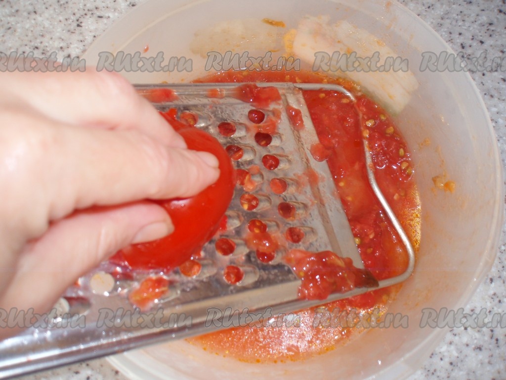Для приготовления соуса 2-3 помидора среднего размера натереть на терке.