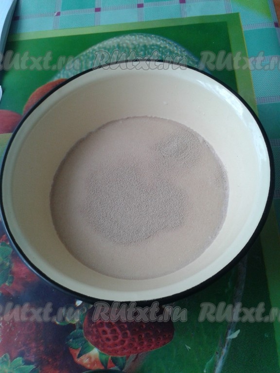 Молоко нужно подогреть, чтобы было теплым, но не горячим, добавить дрожжи и хорошо перемешать.