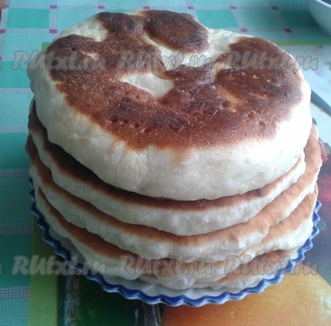 В разогретую сковороду налить подсолнечное масло так, чтобы оно покрывало половину коржа. Когда масло хорошо прогреется, выложить корж и накрыть крышкой. Коржики перед жаркой можно прокалывать вилкой, чтобы прожаривались равномерно и не вздувались.