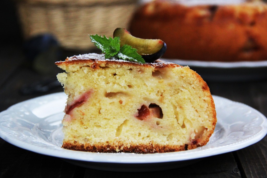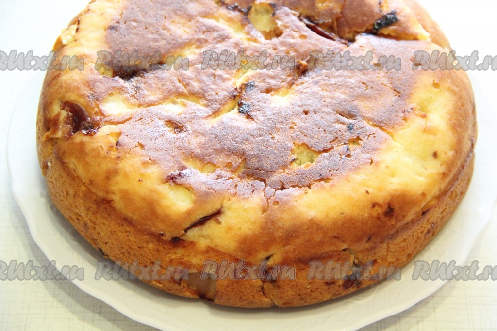 Готовую выпечку нарезать на кусочки и подать к столу. Вот такой пушистый, наивкуснейший пирог, приготовленный со сливами на сметана в мультиварке, получился, он просто тает во рту.