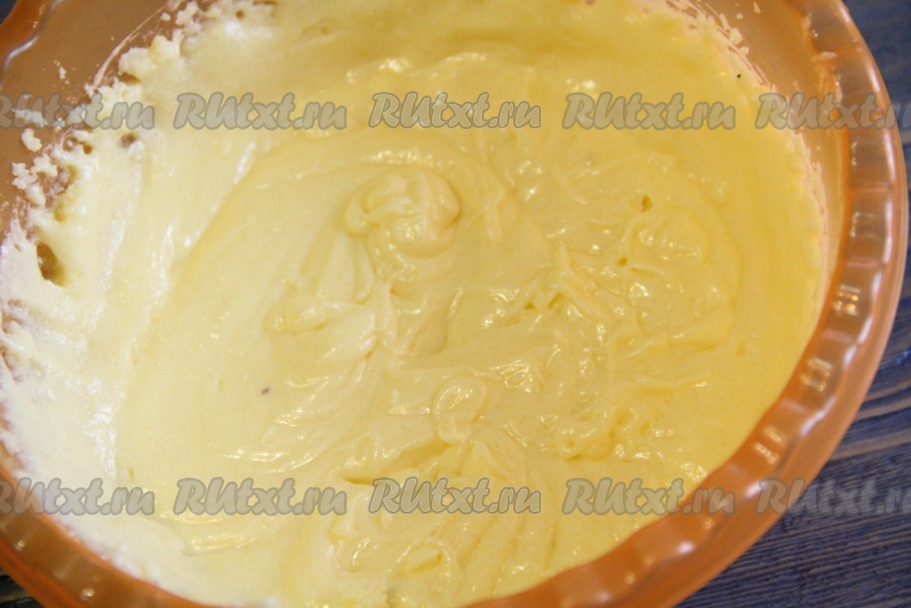 Масляно-яичная масса получится очень воздушной и лёгкой.