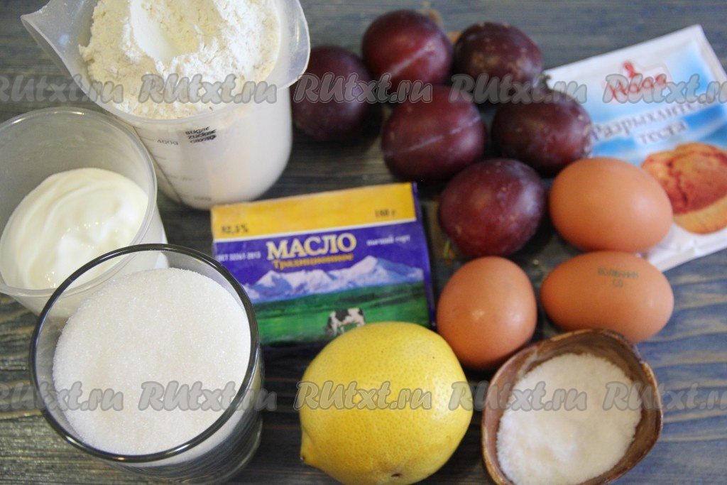 Подготовить продукты для замешивания теста. Сливы вымыть и обсушить. Сливочное масло заранее размягчить (масло можно заранее достать из холодильника, чтобы оно согрелось до комнатной температуры или, как это сделала я, размягчить его в микроволновке, чтобы оно немного потекло).